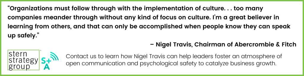 Encouraging employees to speak up can also prepare an organization for coming challenges. Travis points to the demise of Blockbuster, where he served as COO until 2004, as an example of why it’s vital for executives to allow their teams to be able to challenge the status quo.