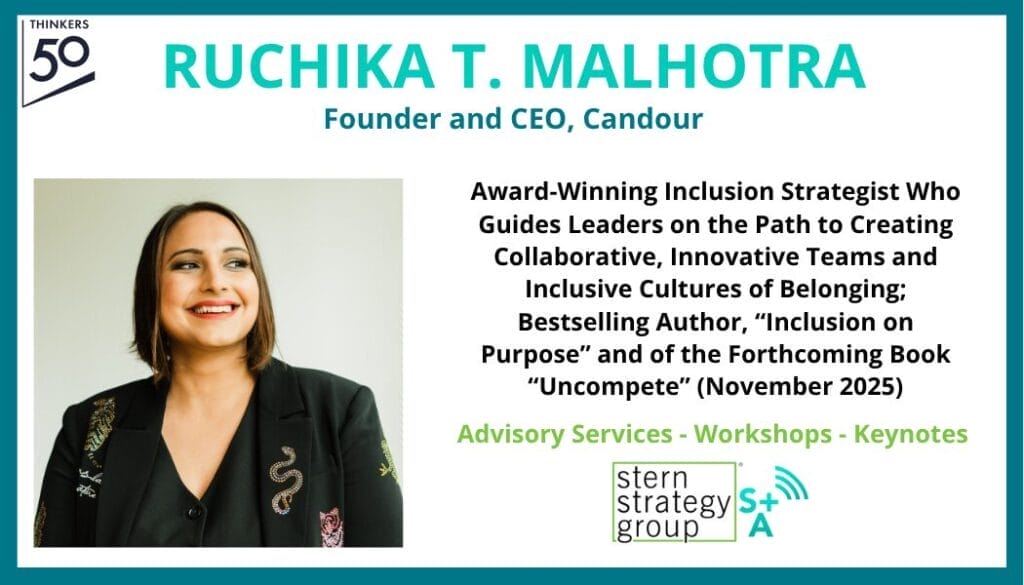 Ruchika T. Malhotra is an award-winning inclusion strategist and bestselling author who helps organizations embrace collaboration to create a culture of innovation, inclusion and trust. The conversations she guides show leaders how to transition from intention to impact.