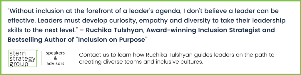 Ruchika Tulshyan is available to advise your organization via virtual and in-person consulting meetings, interactive workshops and customized keynotes through the exclusive representation of Stern Speakers & Advisors, a division of Stern Strategy Group®.